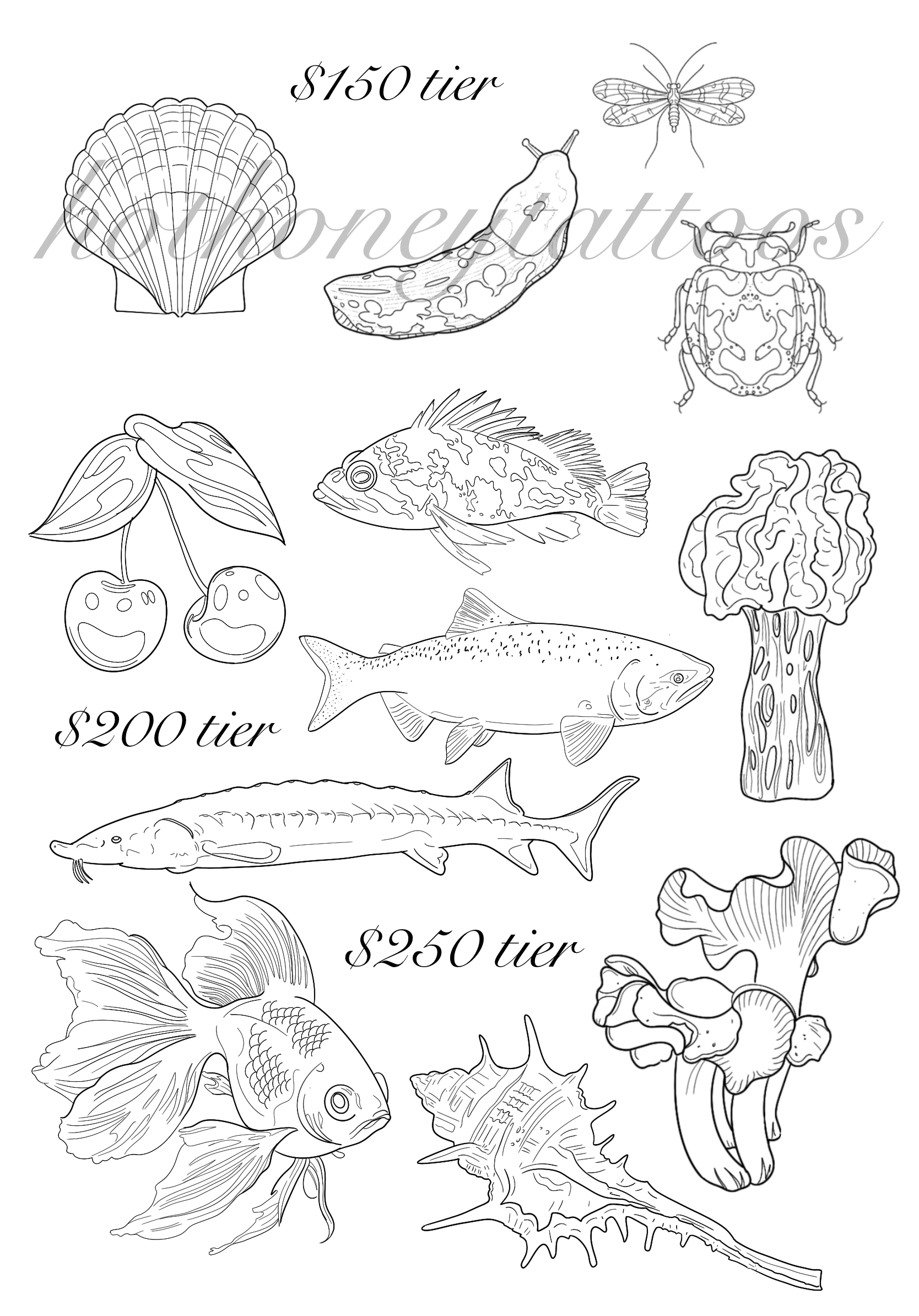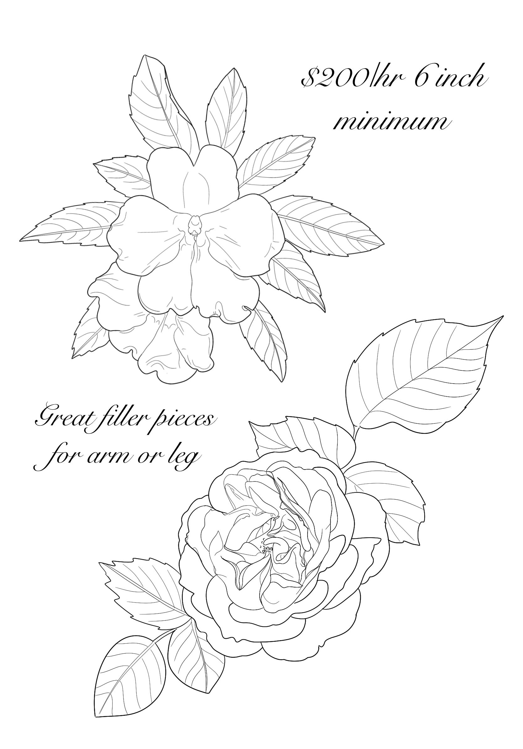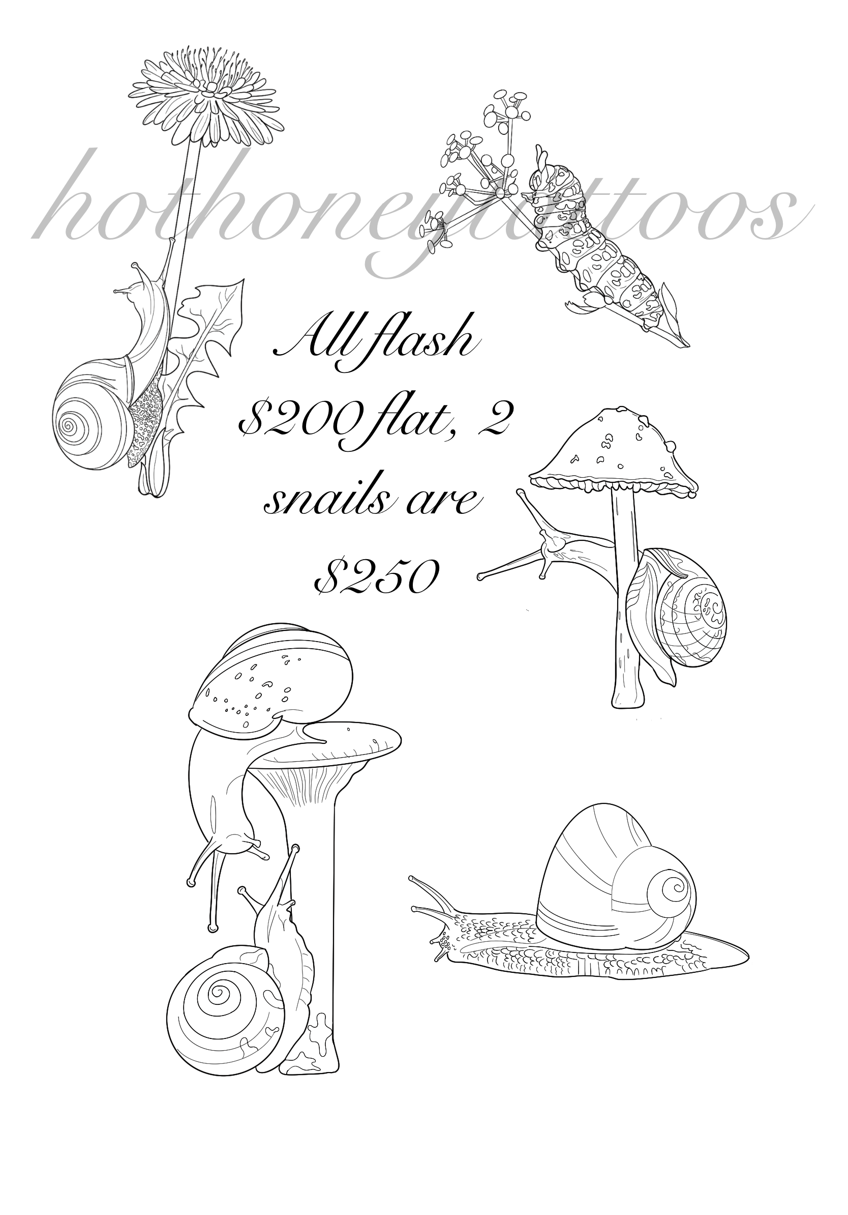 Below are flash designs I have available. The majority of these designs will be tattooed at my flash hourly rate of $200 per hour. Please screenshot the design you are interested in and upload this into your tattoo request form.